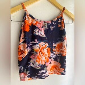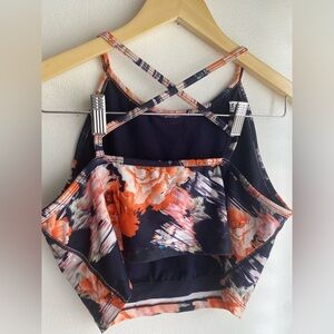 Betsey Johnson Performance Long Line Sports Bra Orange Floral Size Large Workout