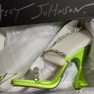Betsey Johnson Perry Citron Neon Green Rhinestone Strappy Heels Size 8