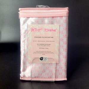 Betsey Johnson Petal Pink Coquette Bow Ribbon Satin Pillowcases 20 X 30 NIP
