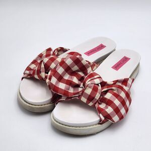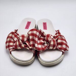 Betsey Johnson Picnic Red Gingham Bow Slide Sandals
