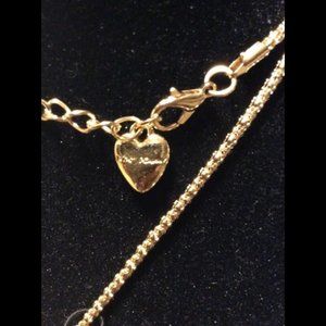 from a 24" golden snake chain, with a 2" extender and a lobster claw clasp.
