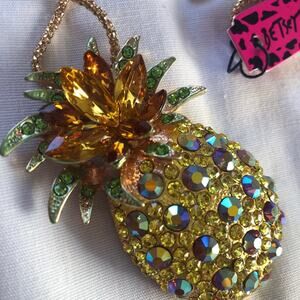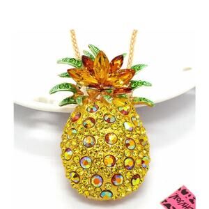 Betsey Johnson Pineapple Pendant Necklace Rhinestone Crusted Fruit Salad NWT