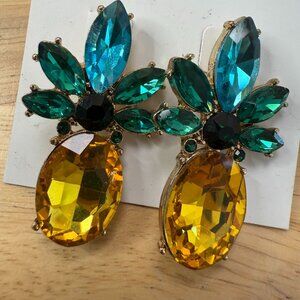 Betsey Johnson Pineapple Rhinestone Earrings With Yellow & Green Gemstones
