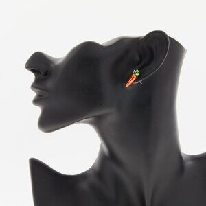 * DESIGN: Whimsical mismatched stud earring set featuring a metallic hot pink bunny and an orange carrot design for playful style