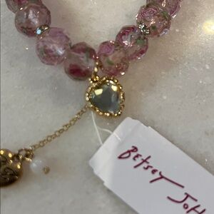 Betsey Johnson Pink Crystal Bracelet with Gold Charms BRAND NEW STRETCH