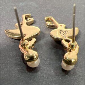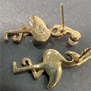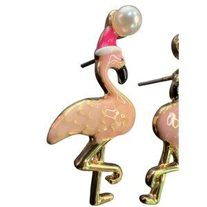 Betsey Johnson Pink Flamingo Stud Earrings Santa Hat Pearl Christmas Whimsical