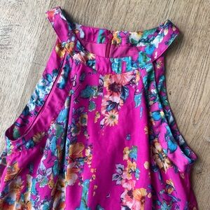 Betsey Johnson Pink Floral High Neck Swing Dress 6 Sleeveless Boho vintage Y2K