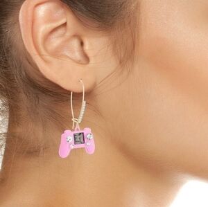 Charming pink controller earrings with glittering stones. Adds a playful flair.
