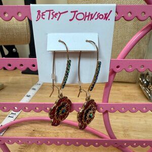 These stunning drop earrings from Betsey Johnson showcase a captivating floral design in pink and gold tones. Adorned with delicate rhinestone accents, these earrings combine elegance and charm effortlessly. Perfectly complementing both evening wear and casual outfits, they offer a vibrant yet classy appeal to your accessory collection.