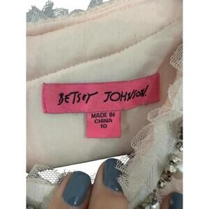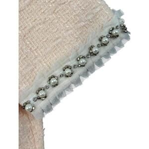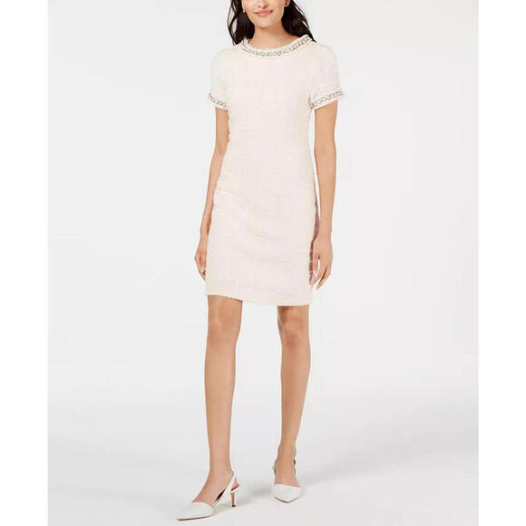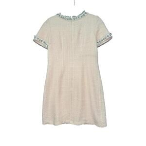 Betsey Johnson Pink Imitation Pearl Bouclé Tweed Shift Dress Size 10 Embellished