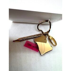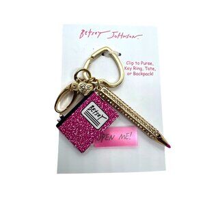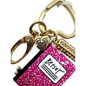 Add a touch of whimsy to your accessories with this Betsey Johnson keychain. Featuring a pink notebook and rhinestone-studded pencil, it's both stylish and functional.