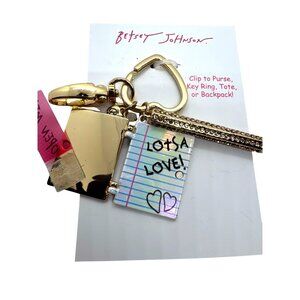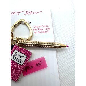 Betsey Johnson Pink Notebook & Pencil Keychain Bag Charm Purse Clip School