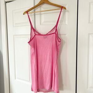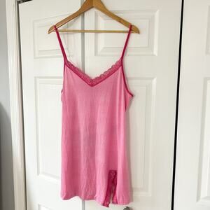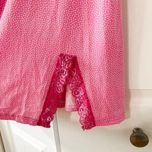 Betsey Johnson Pink Polka Dot Lace Trim Slip Chemise Nightgown Medium
