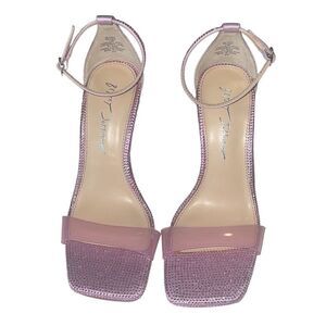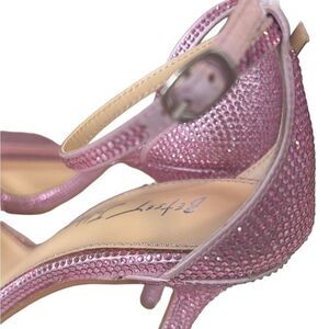 Betsey Johnson Pink Rhinestone Square Toe Ankle Strap Stiletto Heels Sz 7.5