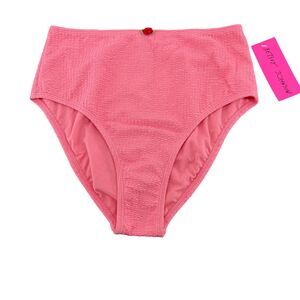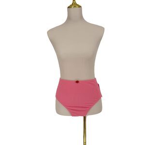 Betsey Johnson Pink Swim Ribbed Rosette Scrunch High Waist Bikini Bottom Sz M