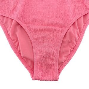 swimsuit bottom, swim bottom, bathing suit bottom, high rise, scrunch, ribbed, textured, floral detail, pink, solid pink, mid rise, cheeky, moderate coverage, women’s swimwear, women’s bikini, women’s swimsuit, women’s bathing suit, swim bottom size M, size medium, medium, designer swimwear, luxury swimwear, Betsey Johnson swim, Betsey Johnson bikini, Betsey Johnson swimsuit, Betsey Johnson bathing suit, resort wear, pool party, beachwear, vacation wear, summer swim, sexy bikini, trendy bikini, Betsey bikini bottom, retro high waist bikini, vintage inspired swim, fashion swimwear.