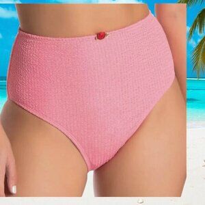 Betsey Johnson Pink Ribbed Scrunch High Waist Rosette Bikini Bottom