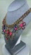 This Betsey Johnson necklace showcases a stunning array of pink and blue floral motifs, crafted with intricate crystal detailing. The bold design features a chunky gold-tone chain that supports cascading flowers, creating a striking bib-style statement piece. Perfect for adding a touch of elegance and color to any ensemble.