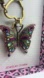 Charming butterfly keychain with sparkling details. Features pink and gold tones. Perfect for adding flair to your keys.