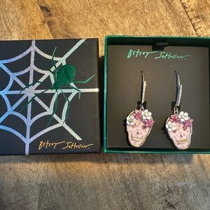 Betsey Johnson Pink and Gold Floral Skull Earrings