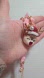 Playful necklace with a winking reindeer pendant. Features pink ribbon and gold chain accents. Adds a whimsical touch to any look.