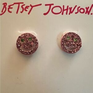 🩷 Betsey Johnson Cute multi crystal pink earrings with green smiley face design. Perfect for adding a playful touch to any outfit. Post backs hypoallergenic & nickel free 🩷