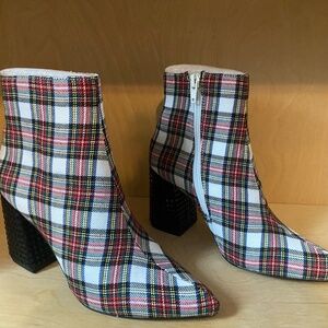 Betsey Johnson Plaid Chunkey Ankle Boots