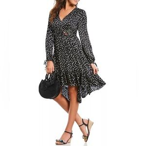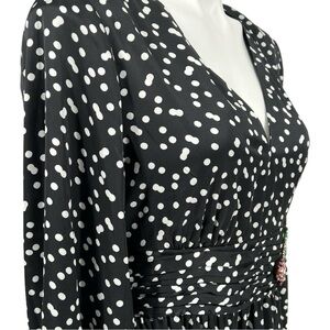 Betsey Johnson Polka Dot Beaded Hi-low Ruffle Midi Length Wrap dress sz 8 new