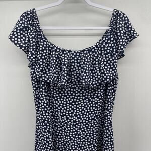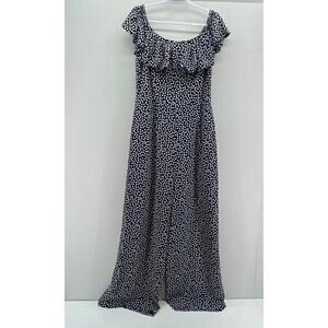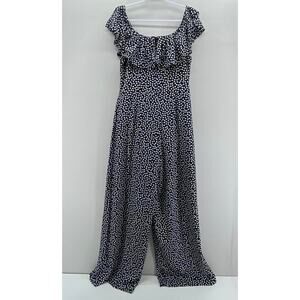 Betsey Johnson Polka Dot Jumpsuit Womens 14 Blue White Off Shoulder Ruffle