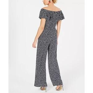 Betsey Johnson Polka Dot Jumpsuit After Dark Navy Blue White Off the Shoulder Ruffle Wide Leg Pant Back Zipper