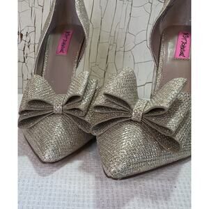 Betsey Johnson Prince Gold Champagne Bow Pumps Stiletto Heels Size 10