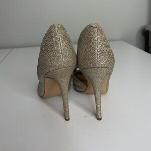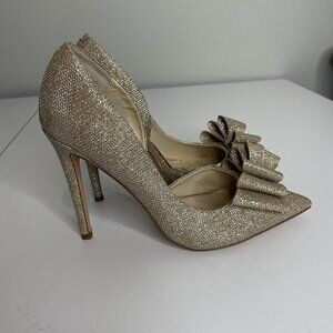 Betsey Johnson Prince Heels Gold Glitter Metallic Bow Size 8.5