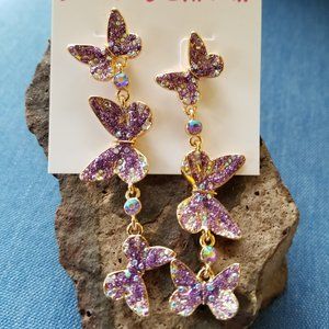 Betsey Johnson Purple Butterflies Dangle Earrings - NWT