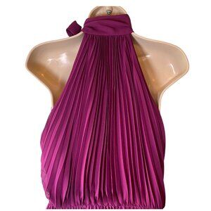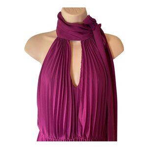 Betsey Johnson Purple Pleated Halter Midi Dress 8 Wedding Baby Shower Formal