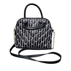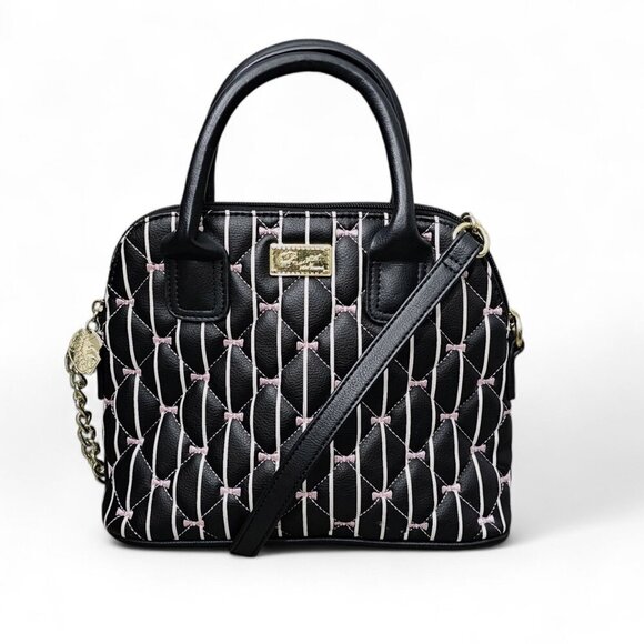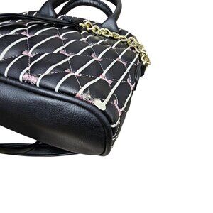 Betsey Johnson Quilted Embroidered Bows Dome Black and Pink Crossbody Bag