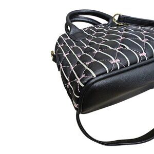 Betsey Johnson Quilted Embroidered Bows Dome Black and Pink Crossbody Bag Y2K