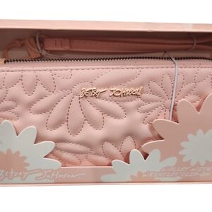 🩷🔹Betsey Johnson 🔹 Quilted Flowers Coral Pink Zip All Around Wristlet Wallet