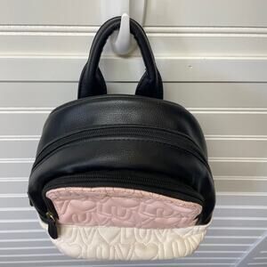 EUC is a pink, black and cream heart shaped and Luv quilted all over mini backpack.