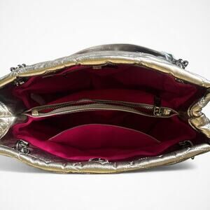 Betsey Johnson Quilted Metallic Hearts Shoulder Bag Everyday Tote