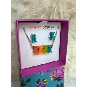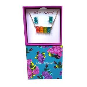 Betsey Johnson Rainbow Gummy Bear Earring and Necklace Set