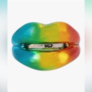🌈THIS Chunky statement ring featuring vibrant rainbow-colored lips. Ring is size 7.5. Made from metal.