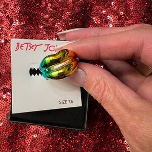 🌈 Betsey Johnson Rainbow Lips Ring-SZ 7.5-NWT🌈