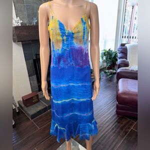 🌈 Betsey Johnson Rainbow Tie-Dye Spaghetti Strap Dress – Size Small