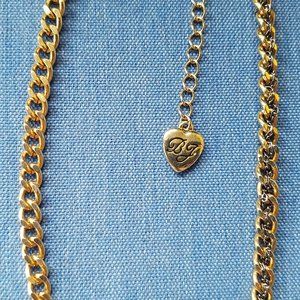 This is a Gorgeous and Fun Charm Necklace by Betsey Johnson. The Focal Charms are the Red and Black Lucite Heart Charms. There is a Silver-tone Open Heart on a Chain. There is one Oval Clear Lucite charm that has a picture of a Spider behind the clear part of the Charm. There are two Black Bows and two Black Baubles. There is also an Oval Silver-tone hardware Charm on a chain, with a Spider inside. The Right side of the Necklace's chain has another smaller chain (like Gunmetal-tone Gray Color) running through the larger chain. Gold-tone, silver-tone, & Gunmetal-tone Gray Hardware. The Iconic "BJ" The Iconic Gold-tone "BJ" Heart Charm is present. Lobster clasp closure.