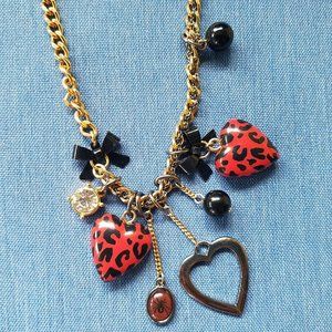 ❤️🕷️🖤Betsey Johnson Red & Black Heart Charm Spider Necklace - GPC🖤🕷️❤️