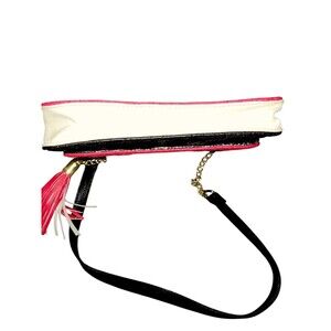 Betsey Johnson Red & Black Quilted Roses Purse. Vegan leather. Side panels are white. Gold chain and faux leather strap. Fun black & silver lining. One zip interior pocket. Snap closure.