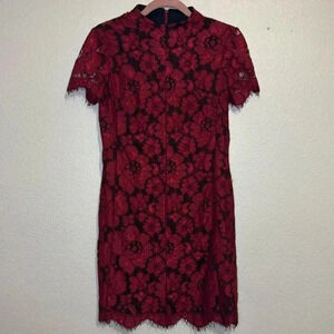 Betsey Johnson Red Mock-Neck Floral Lace Sheath Dress