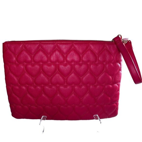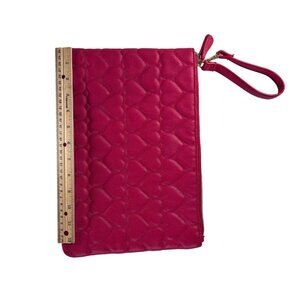 Betsey Johnson Red Quilted Faux Leather Heart Pattern Wristlet Clutch Bag ipad