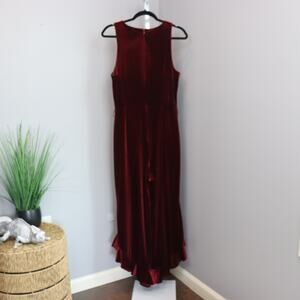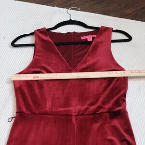 Betsey Johnson Red Velvet Ruffle Hem Jumpsuit Size 8 Sleeveless Wide Leg Romper