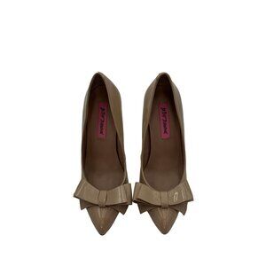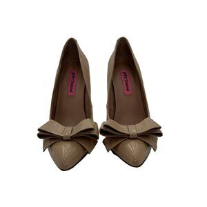 Betsey Johnson Reload Patent Leather Nude Pumps - Size 7 - Great condition (a couple scuffs, faint residue from glue on the bow - please see pictures for all details) - Color: Nude - Super cute nude pumps by Betsey Johnson featuring a pointed toe and bow applique - Heel measures approx 4.5 inches. Comes with original box.
